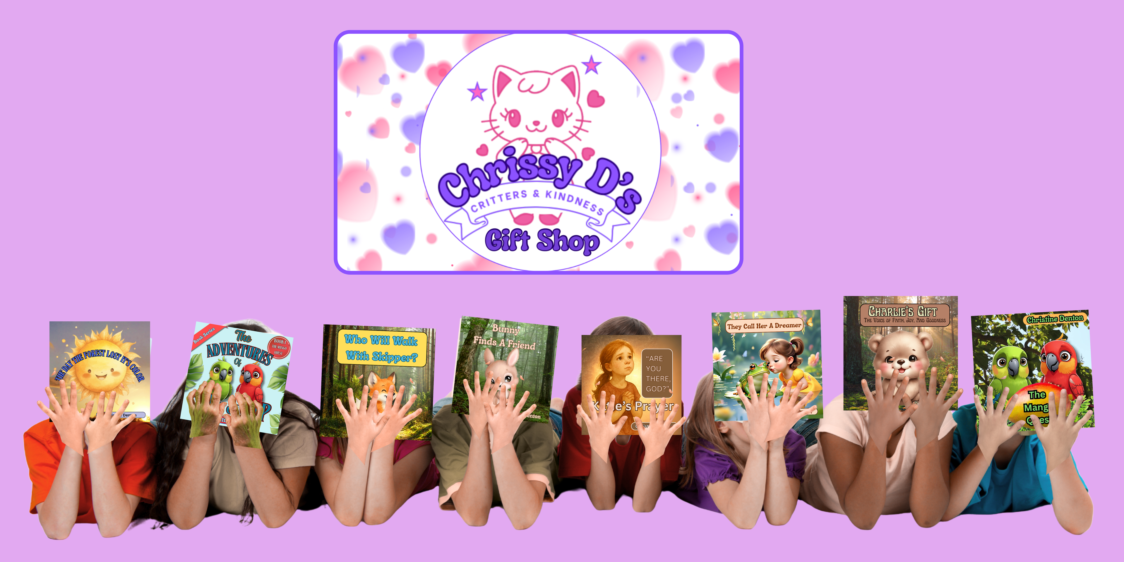 Welcome to Chrissy D's Critters and Kindness Book Shop, a magical place where stories come to life! Here you'll find delightful children's books, character-themed items, stickers, and cozy fun merchandise that inspire friendship, kindness, and acceptance of differences. Whether you're a parent, teacher. or a homeschooling family, our shop also offers fun extras and free printables to spark imagination and learning. Explore our world of characters and discover treasures that bring joy to kids and adults alike!